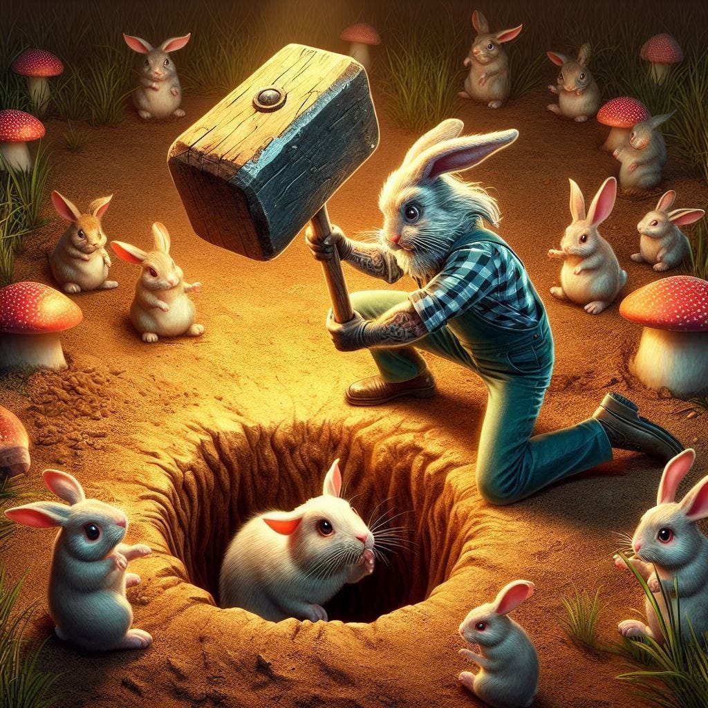 An AI take on playing whack-a-mole while down a rabbit hole (it’s a little darker than I expected 😨)